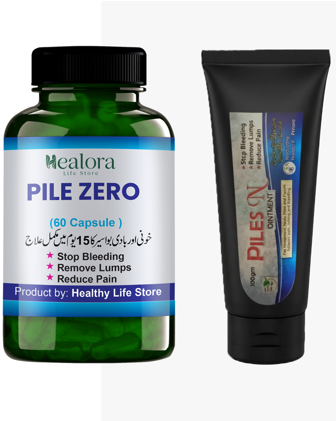 Piles ON Ointment Hemorrhoid Relief Cream (100g) + Pile Zero Zebiles Hemorrhoid Care Support Capsules (60 Capsules)